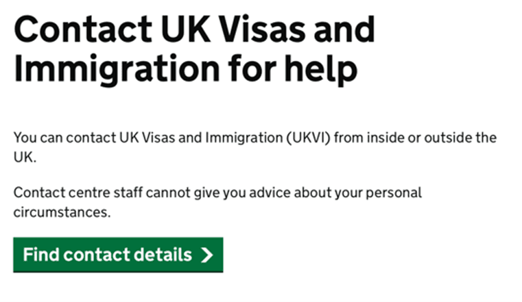 1. İngiltere Vize Bölümü’ne yazılı talepte bulunmak üzere ‘İletişim Bilgilerini Bul’ anlamına gelen ’Find contact details' butonuna tıklayın.